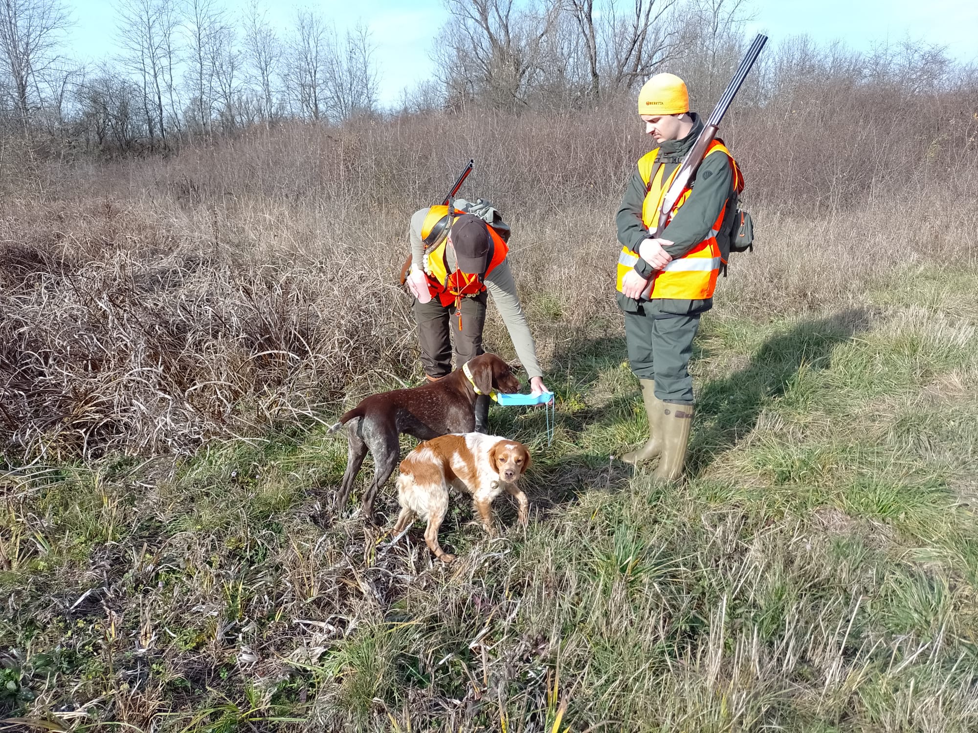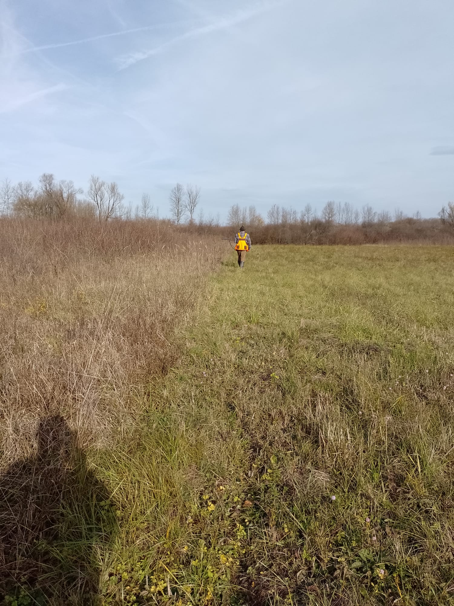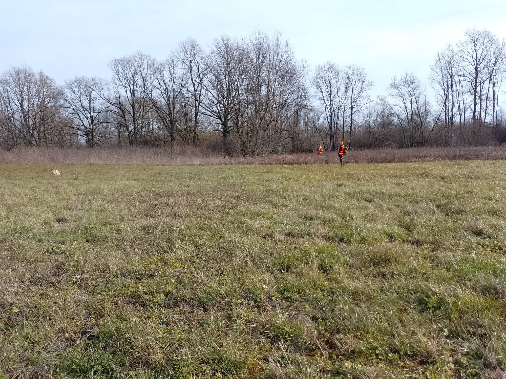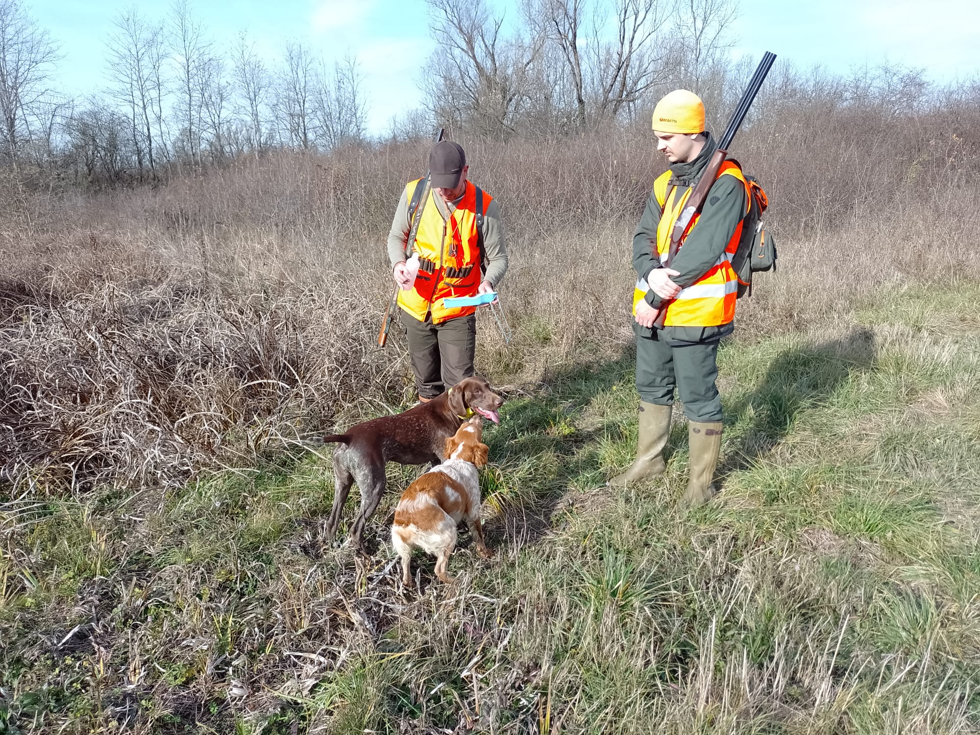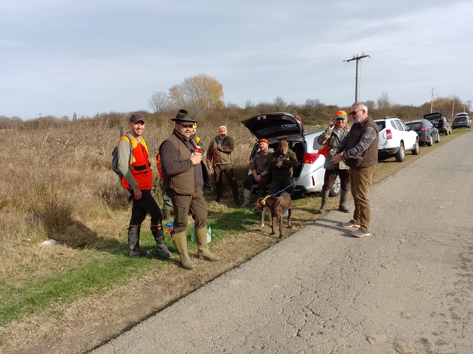 Danas je 15. listopada, subota i prema planu lova idemo u polje loviti fazana i zeca. Lovci koji imaju pse ptičare danas će danas moći uživati u njihovom radu. Bretoni, kratkodlaki i oštrodlaki ptičari nestrpljivo čekaju da se krene u lovište. Danas lov vodi naš lovnik Marijan Petrović. Nakon upoznavanja lovaca s današnjim planom lova četrnaest lovaca kreće na teren prema Bukovskom. Lovimo lijevu i desnu stranu ceste. Ujutro je bilo malo svježe, ali već oko deset sati topli vjetar digao je temperaturu na oko 18C i počinjemo se pomalo znojiti i skidati topliju opremu. Naši psi također traže osvježenje, ali kanali su suhi i mogu ga naći samo u nekoliko kolotečina koji su ostavili teški traktori. Neki su dobili svježu vodu iz ruksaka od svojih vlasnika koji se brinu za njihovu dobrobit.