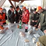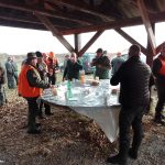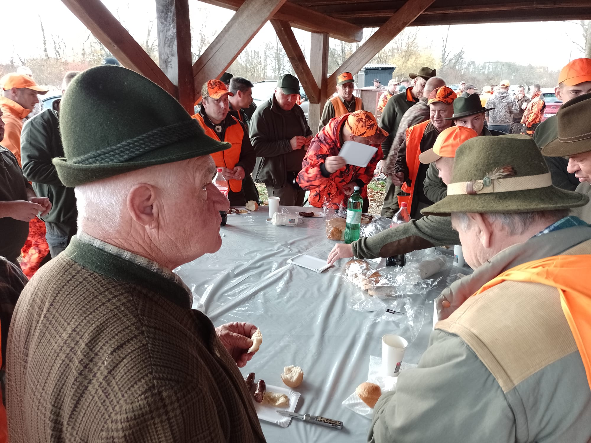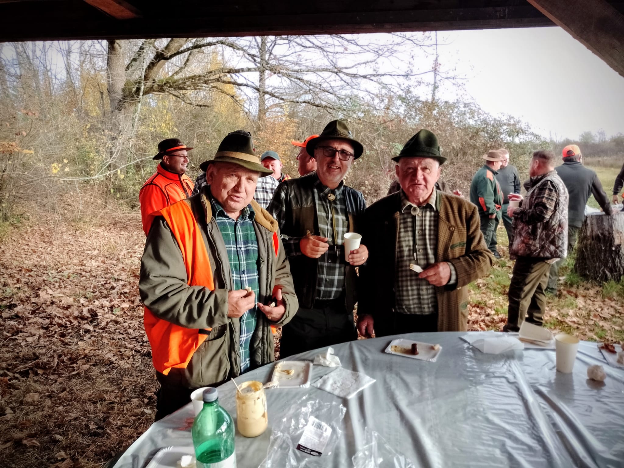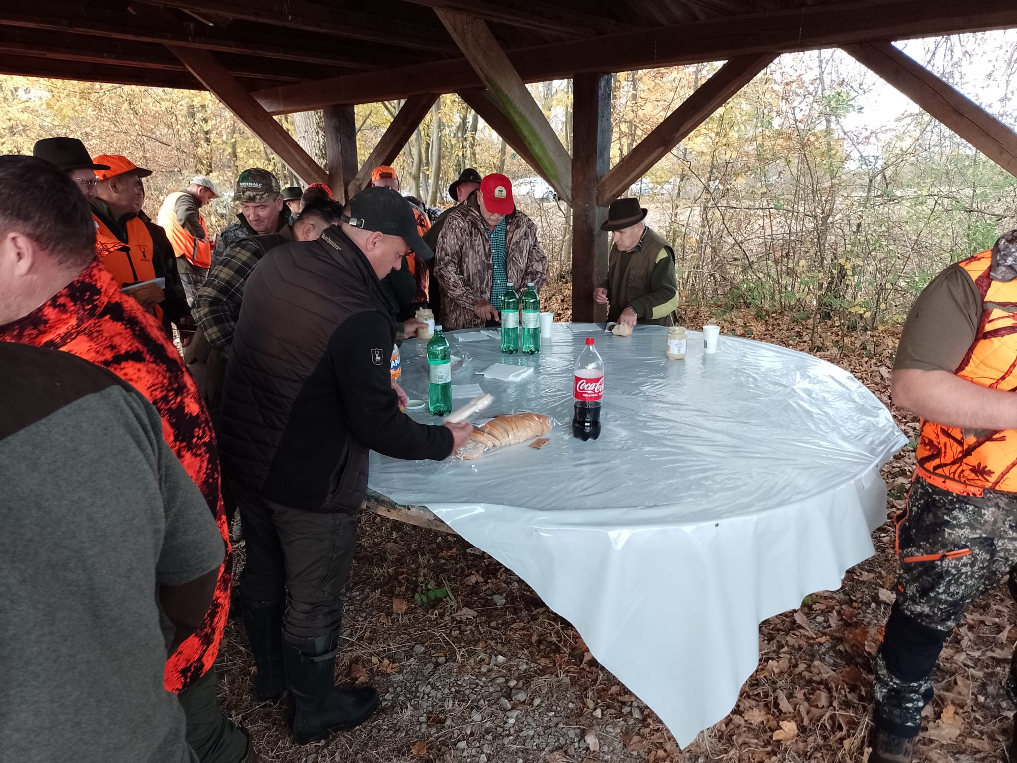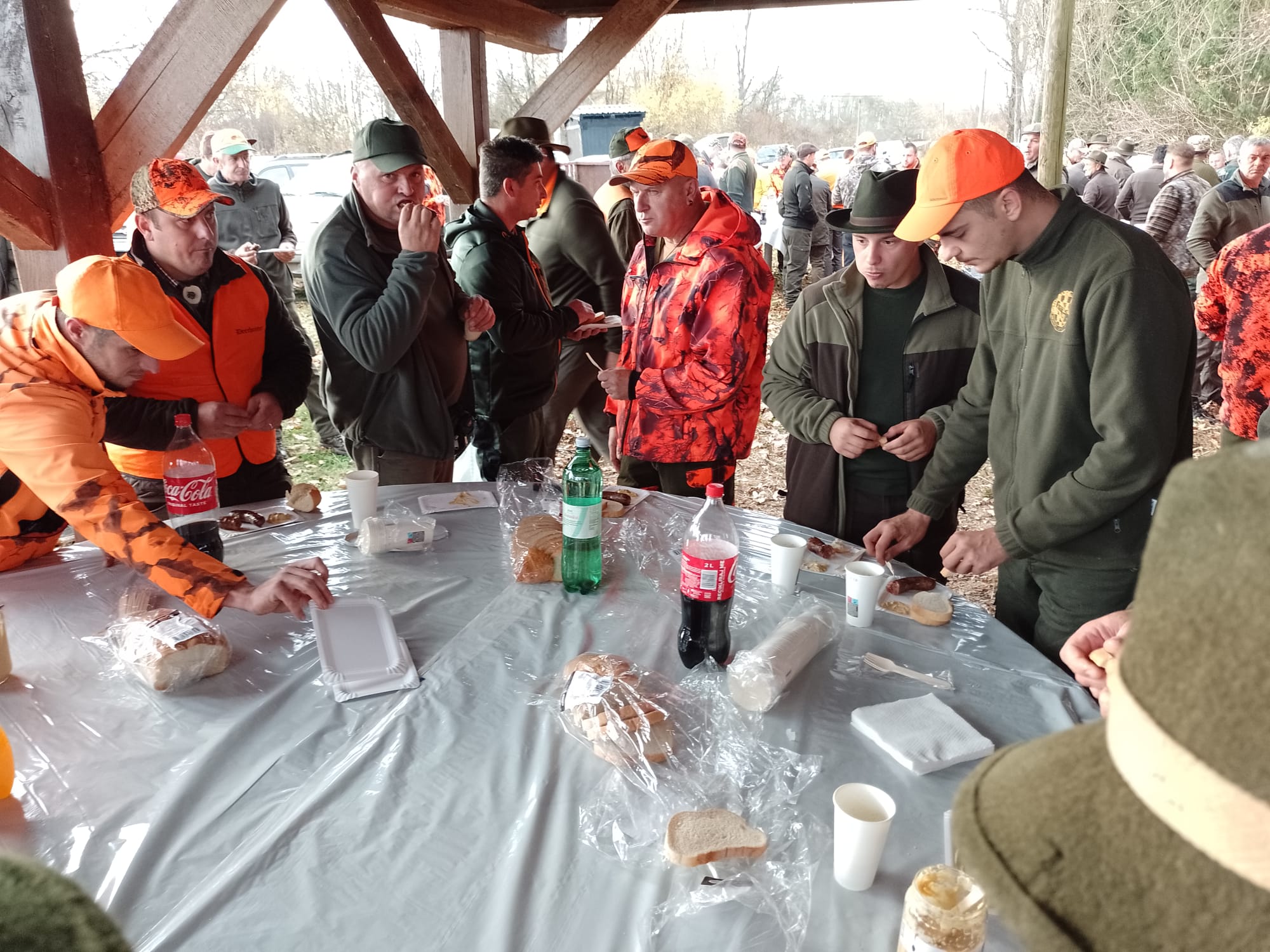 Po završetku Sv. Mise uputili smo se u Bukovsko kod stolova, gdje su naši lovci pripremili lovački doručak za sve nazočne. Naš lovnik Marijan Petrović i Toni Jergović pripremili su nam ukusne kuhane kobasice od divljači za okrjepu i snagu koja će nam biti potrebna u današnjem lovu. Lovnička ekipa u sastavu Mario Kocmanić, Igor Krčelić, Goran Krčelić, Tomislav Marčelja, Tomislav Dobranić i Marijan Petrović nakon provedenih administrativnih procedura oko popisa lovaca za lov pozvala je lovce na okupljanje za početak lova. Za lov je prijavljeno 108 lovaca i 47 lovačkih pasa, priopćio je lovnik Mario Kocmanić koji je detaljno objasnio plan današnjeg lova, i posebno naglasio potrebu provođenja svih sigurnosnih mjera za sigurno odvijanje lova. Voditelji štanta poveli su lovce u pet grupa na zatvaranje linija u predjelu „Široke preseke“. Neobično toplo vrijeme za ovaj dio godine
