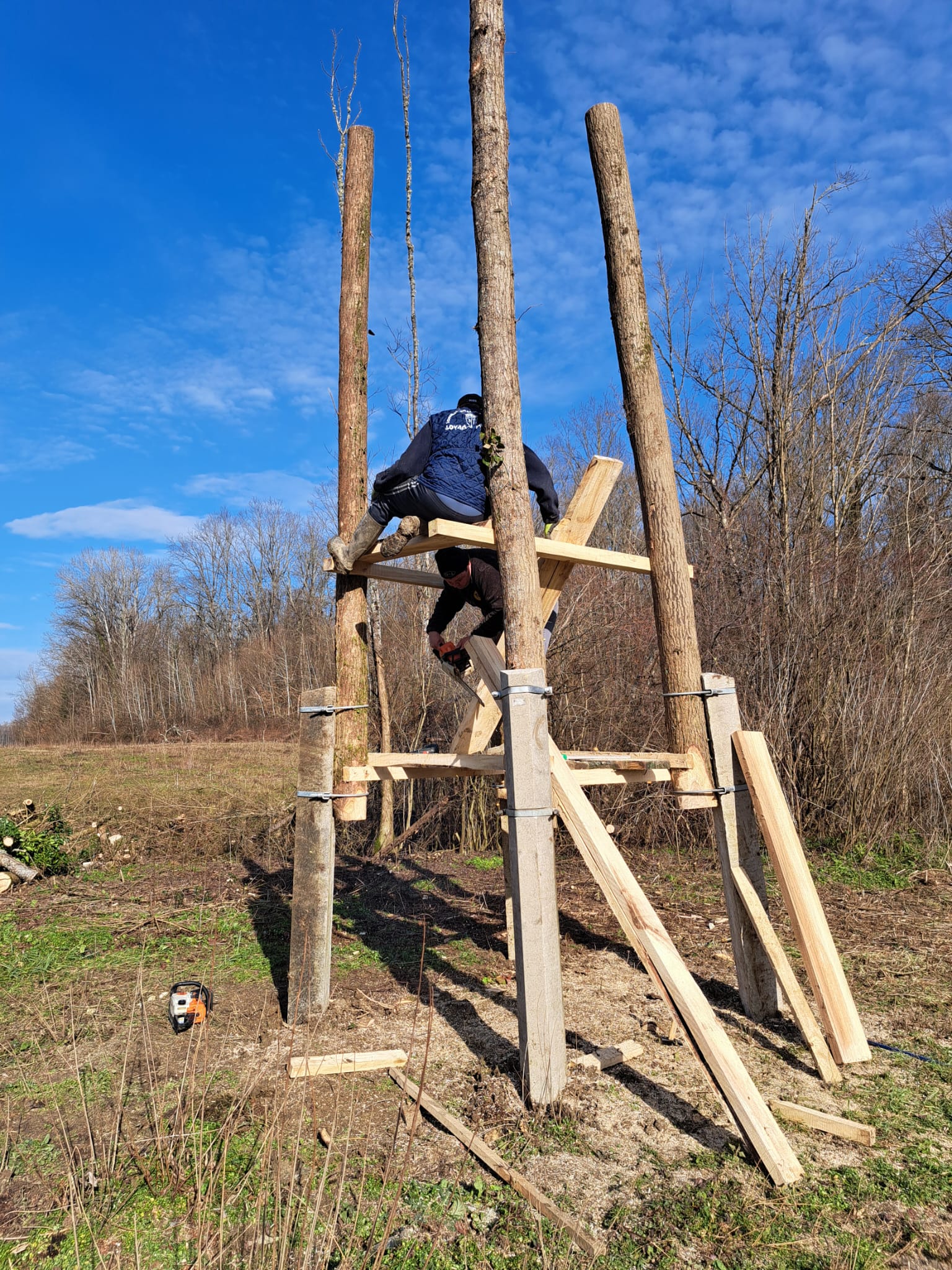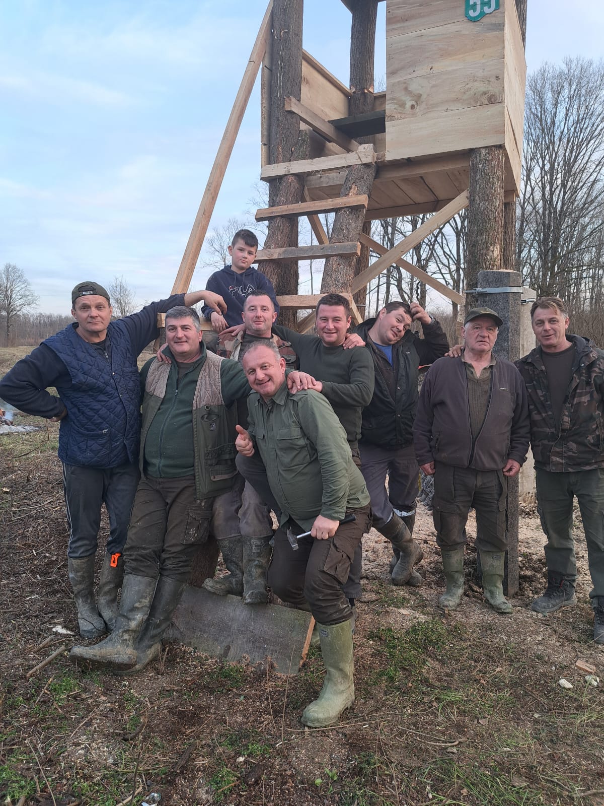 Danas je subota 01. veljače, prohladni je zimski dan, glavnina lovne sezone je iza nas, a grupa vrijednih lovaca je u ugodnom druženju u prirodi izgradila novu visoku natkrivenu čeku. Naravno to je iskusna stara ekipa lovaca koja zna i hoće (Muki, Crni, Balašković S. i I., Mario, Kalc,G.Krčelić, Žalac, Šajnić …), tako da je na istom mjestu na kanalu u Bukovici postavljena nova visoka natkrivena čeka br. 55, koja je ujedno i dobila svoje ime „MUKIJEVA ČEKA“. Naime naš lovac Goran Mukavec slavi 55 rođendan i proslavio ga je u društvu svojih prijatelja lovaca na prvoj ovogodišnjoj radnoj akciji. Radna akcija je uspješno izvršena, a Muki je sve lovce u tu čast počastio pečenim janjcem i pićem. Čestitamo Mukiju njegov 55. rođendan i želimo mu puno sreće i zdravlja, te da ga na novoj Mukijevoj čeki prati dobra kob. Zahvaljujemo se svim vrijednim lovcima koji su sudjelovali u izgradnji ovog lijepog i vrijednog lovno-tehničkog objekta i sve ih skupa pozdravljamo lovačkim pozdravom DAO BOG-DOBRU KOB.