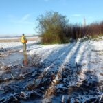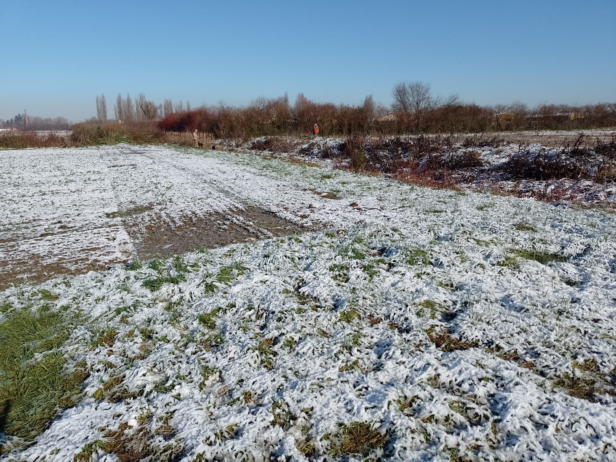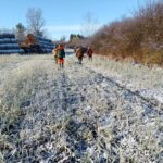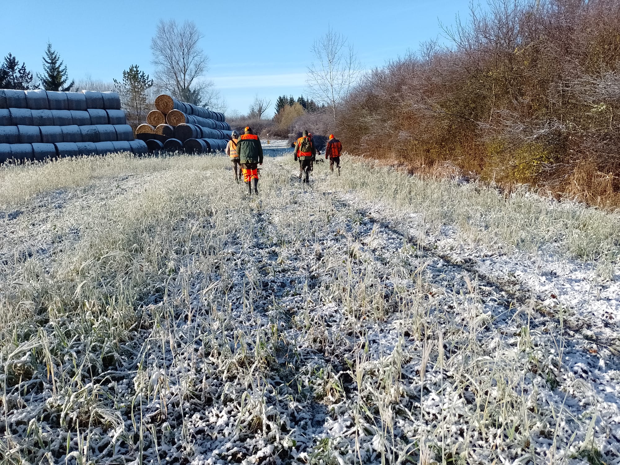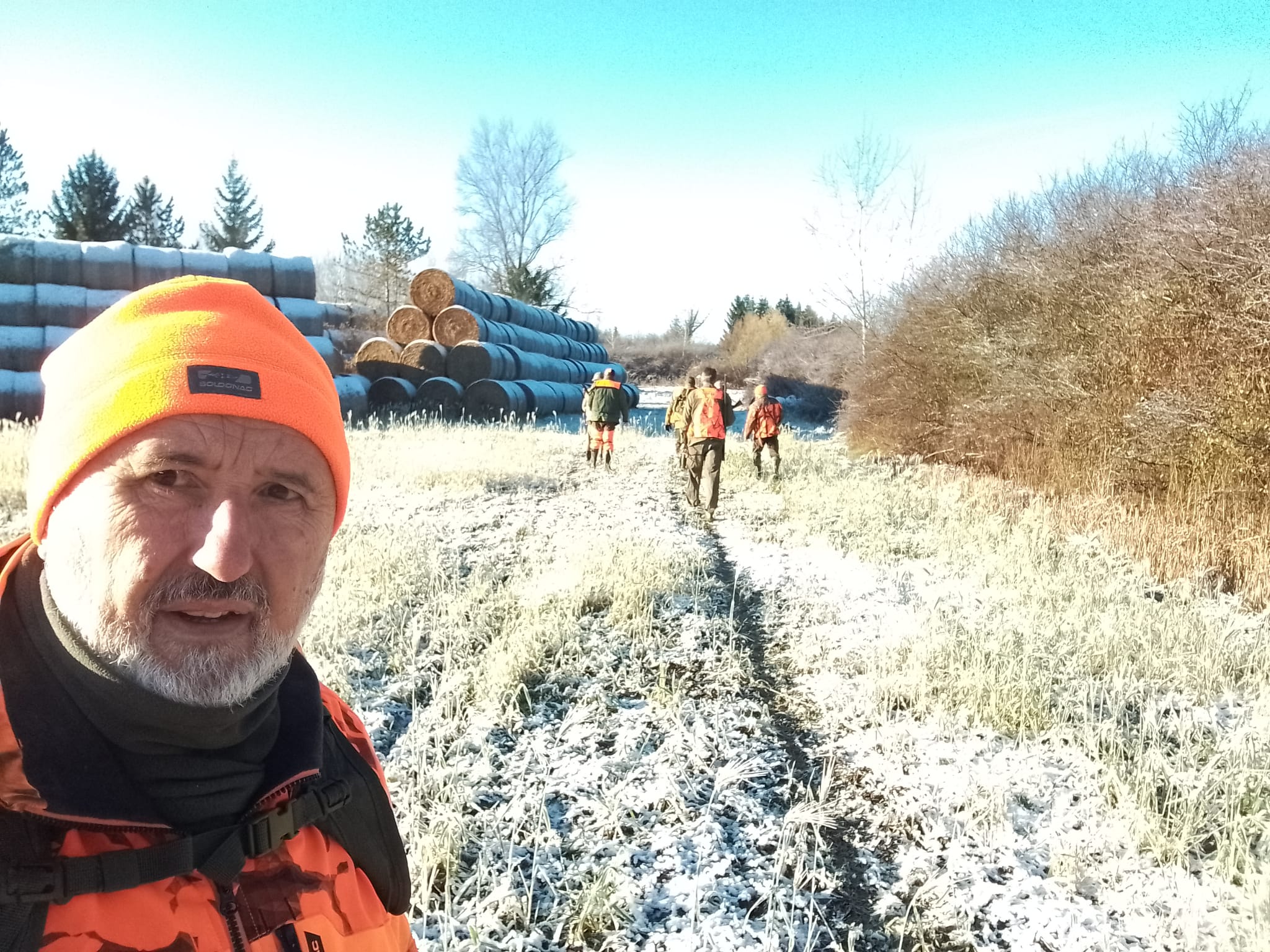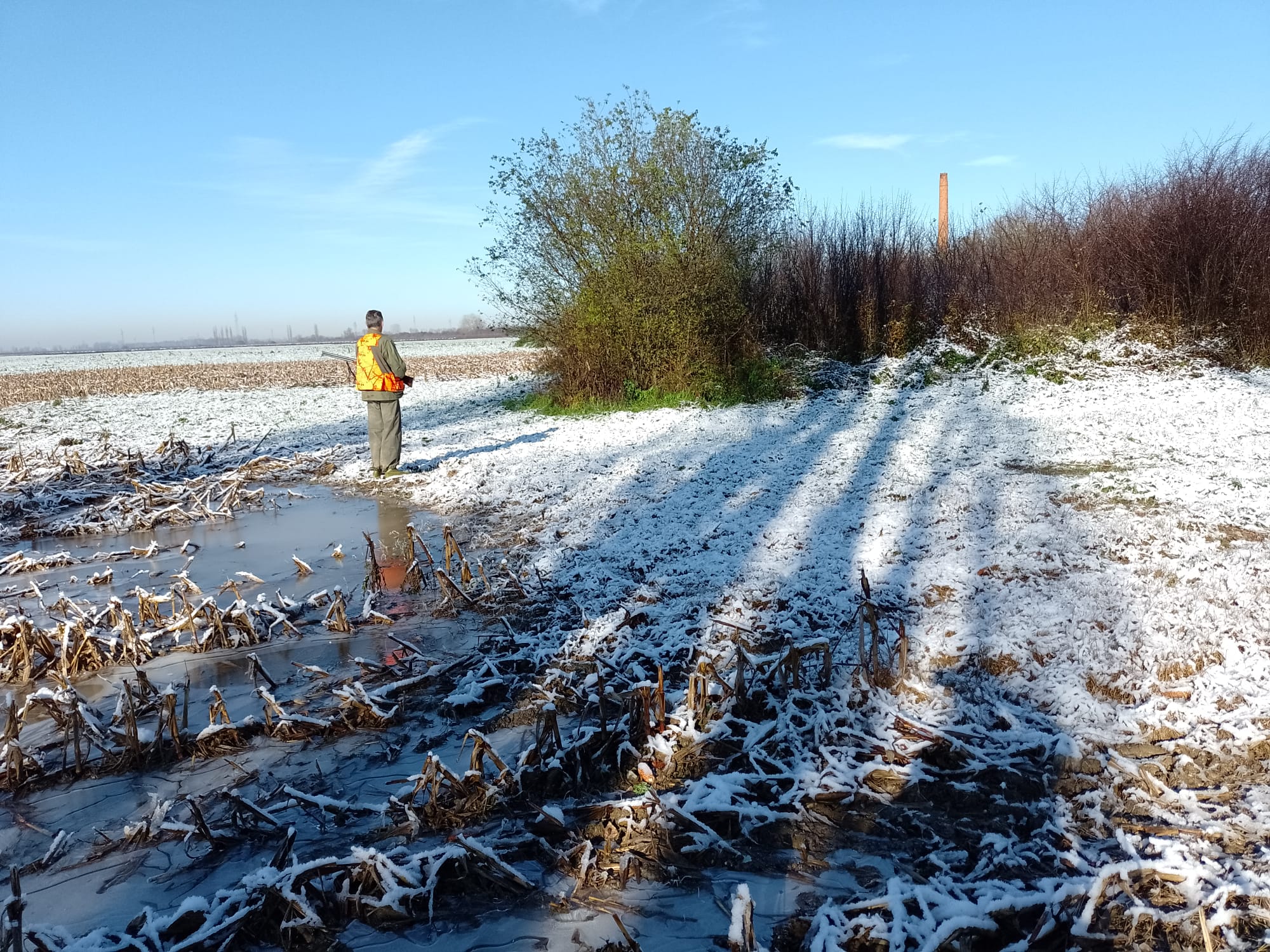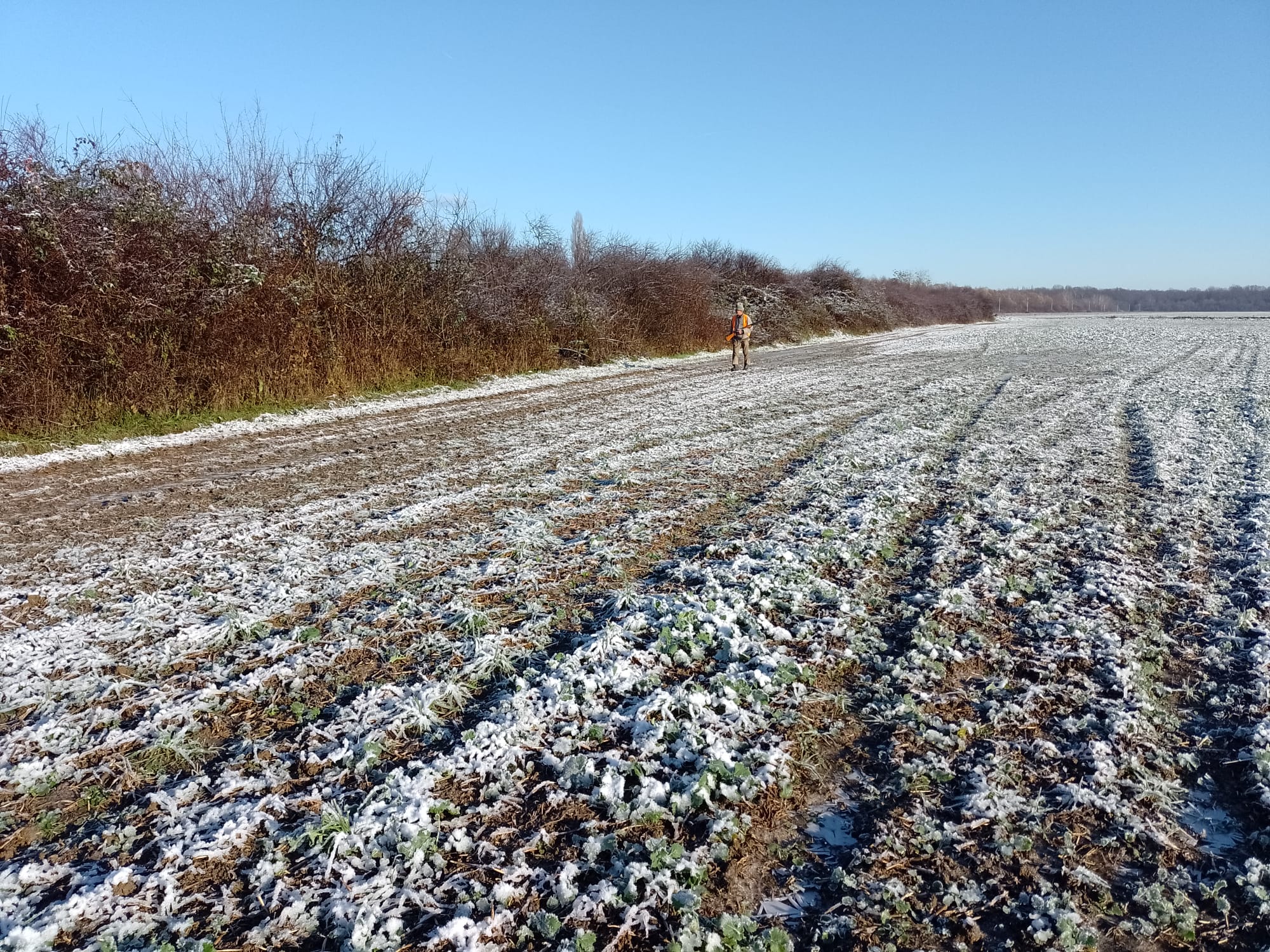Teren je dosta velik i zahtjevan, velike poljoprivredne table su presječene dubokim kanalima koji su sada napunjeni vodom te ih moramo zaobilaziti, a uz puteve su dugačke i široke šikare koje su idealno stanište za zeca i fazana. Tlo je zamrznuto pa se lako krećemo po oranicama i livadama, pod nogama pucketa led, a obrazi nam se rumene od hladnoće. Naši lovački psi su u dobroj kondiciji i željni lova, te brzo dižemo prvu divljač i poljem se počinju prolamati prvi „šusevi”. Nakon tri sata lova u prekrasnom zimskom ambijentu uputili smo se prema