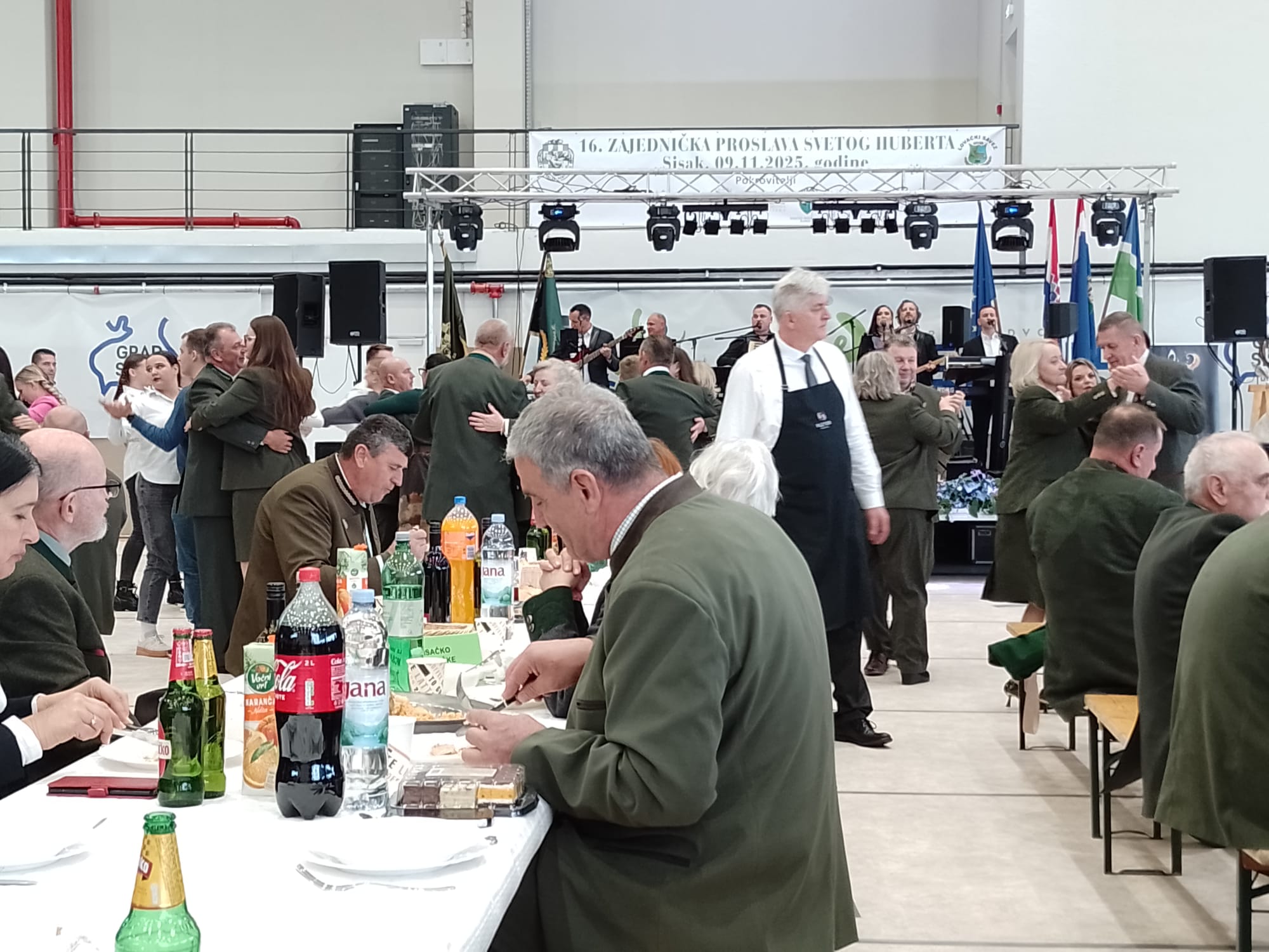 Ove godine Grad Sisak je bio domaćin XVI proslave dana „Sv. Huberta“ u organizaciji Hrvatskog lovačkog saveza, a čiji je domaćin bio Lovački savez Sisačko-moslavačke županije. Proslava je počela okupljanjem lovaca iz svih dijelova lijepe naše domovine ispred Bazilike sv. Kvirina na Zelenom brijegu. Na plato ispred Bazilike pristizali su lovci u svečanim odorama, sa zastavama svojih lovačkih društava, a zbor lovačkih rogista popularnim lovačkim koračnicama zaželio je dobrodošlicu svim gostima i visokim uzvanicima. Impresivno je bilo vidjeti tisuću lovaca u svečanim lovačkim odorama na jednom mjestu okupljenih sa zajedničkim ciljem širenja zajedništva i prijateljstva koje povezuje lov i ljubav prema prirodi, kako je svojim životom pokazao i Sv. Hubert koji je bio strastveni lovac, ljubitelj prirode i biskup. Svečanu procesiju lovaca predvodili su lovci sa zastavama lovačkih udruga koji su dali svečanu ikonografiju cijelom događaju. Zastavu našeg lovačkog društva nosio je naš mladi lovac Mario Vratarić. U prepunoj Bazilici ukrašenoj lovačkim motivima, biskup Vlado Košić održao je svetu misu za sve nazočne lovce, goste i visoke uzvanike, nakon čega je zajednički domjenak i druženje lovaca nastavljeno u sportskoj dvorani Zeleni Brijeg.