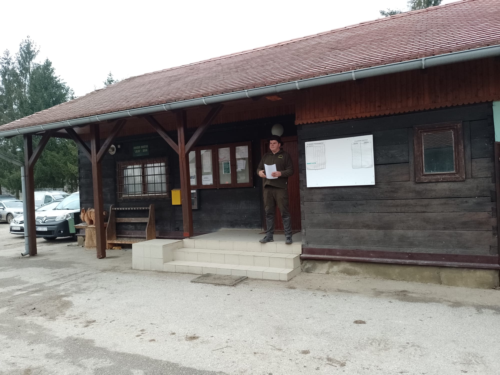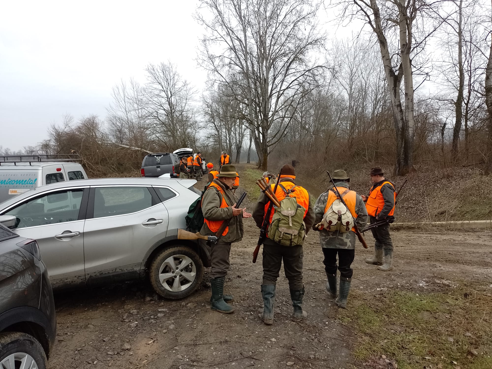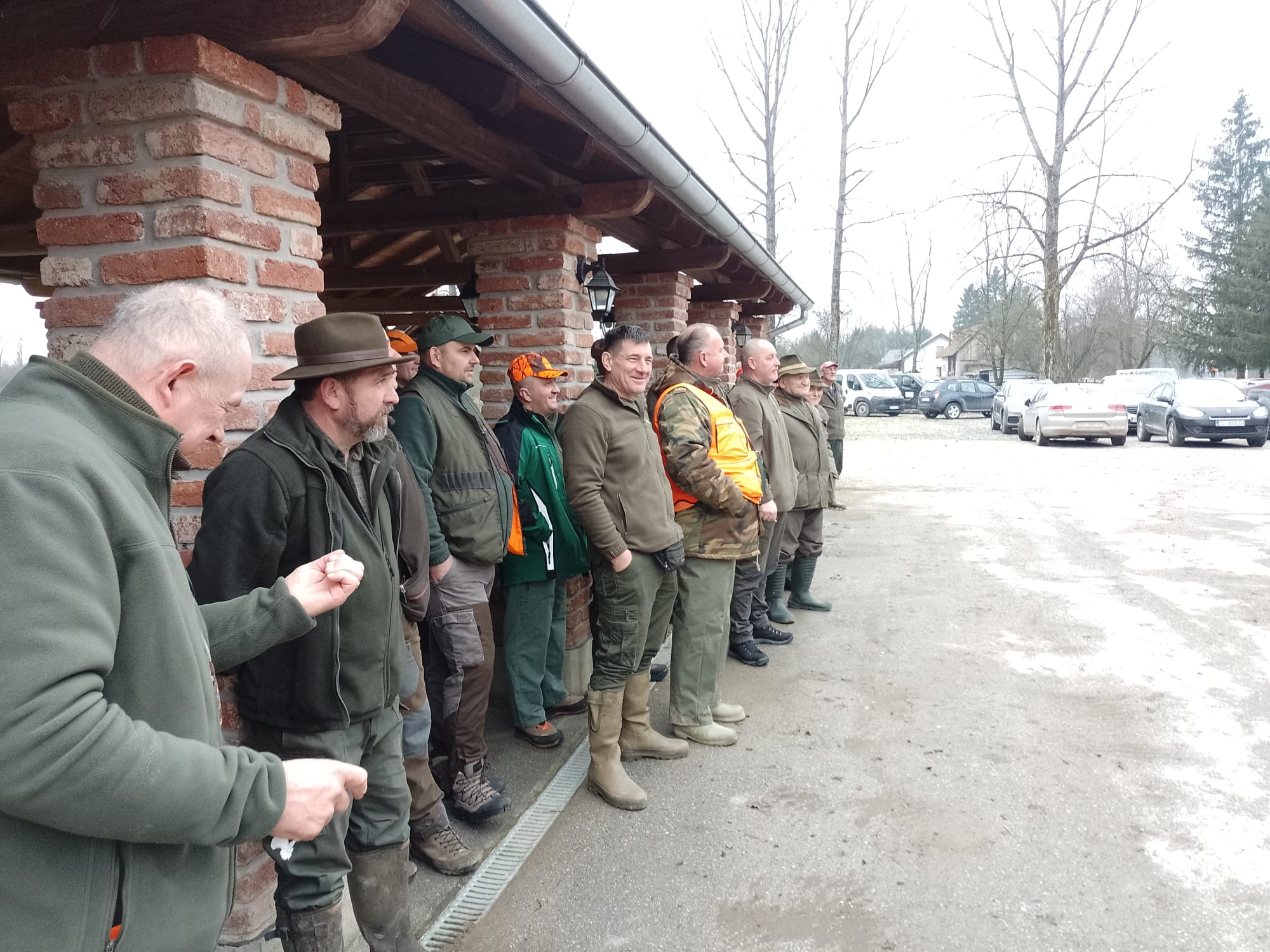 Danas je 31. siječnja i završavamo sezonu skupnih lovova na divlje svinje. Lovni dan započeo je tradicionalnim okupljanjem lovaca u lovačkom domu, gdje smo uz kavu i čaj u ugodnom druženju čekali da nas lovnik pozove u lov. Današnji lov na divlje svinje vodi lovnik Igor Krčelić, a grupu lovaca koja se odlučila za poljski lov poveo je lovnik Tomislav Marčelja. Nakon završenih administrativnih procedura lovnik Krčelić je pozdravio okupljene lovce i priopćio nam današnji plan lova. Lovit ćemo teren ispod Gušća i svi skupa vozimo se do Gušća i dalje krećemo poljskim putem kod doma prema šumi.