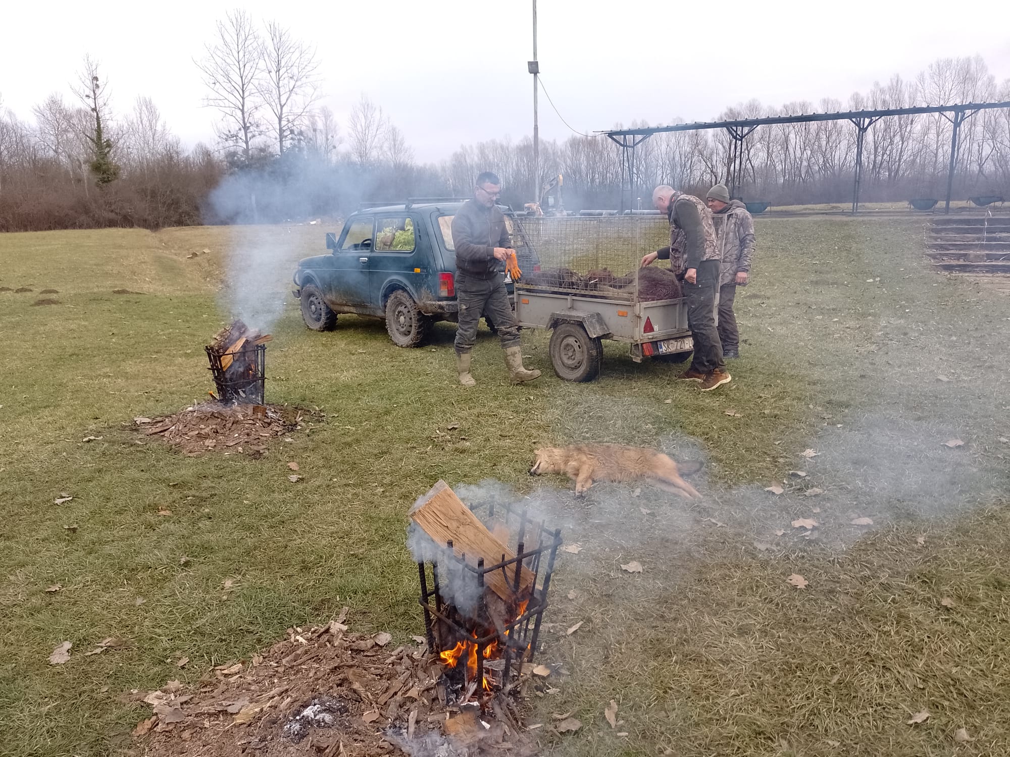 Teren je raskvašen i blatnjav pogotovo put kojim smo krenuli u šumu. Psi su vrlo brzo pronašli svinje i šuma je odjekivala glasnim gonom goniča koji su dugo držali svinje na mjestu. Na žalost u toj borbi stradao je lovački pas vlasnika Siniše Balaškovića kojeg je vepar gadno podrapao po vratu, te je na žalost i nakon veterinarske intervencije uginuo. Lov je bio uspješan, palo je dosta šuseva, a odstrijeljeno je pet grla divljih svinja. U lovačkoj štreki na dlaku je položen i jedan čagalj. Ekipa lovaca koju je vodio lovnik Tomislav Marčelja također je imala dobar lov i odstrel dva kljuna fazana. Naši kuhari danas su nam ispekli dva odojka, tako da smo lovni dan završili zajedničkim ručkom i ugodnim druženjem lovaca. Zahvaljujemo se lovniku Igoru Krčeliću i Tomislavu Marčelji na uspješnoj organizaciji i provedbi današnjeg lova, kao i našim pečenjarima Miroslavu Mariću i Željku Romu i Damiru Baranjčeku koji su pripremili ukusno pečene odojke i grah salatu. Do sljedećeg puta DAO BOG-DOBRU KOB.